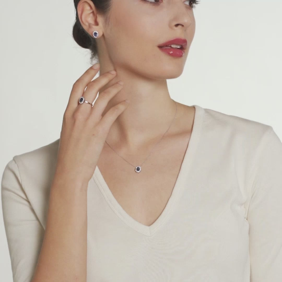 Orecchini in oro bianco 18kt, diamanti e zaffiri blu