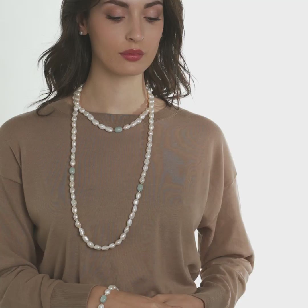 Bracciale in perle d'acqua dolce barocche con acquamarina ed elementi in oro rosa 18kt